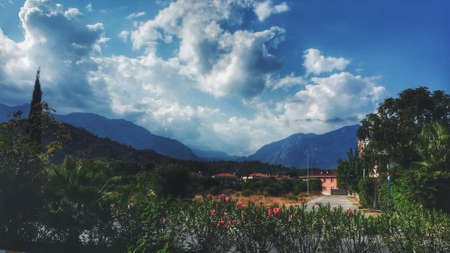 beautiful summer holiday green landscape with mountainous turkey on a warm sunny day