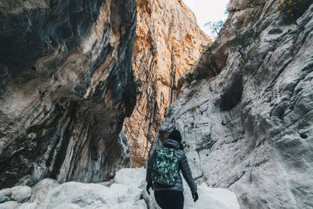 Woman hiking inside the deepest canyon in Europe - Gola Su Gorroppu.