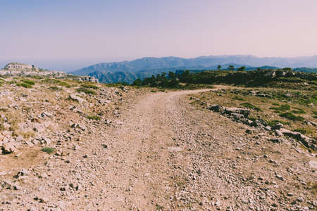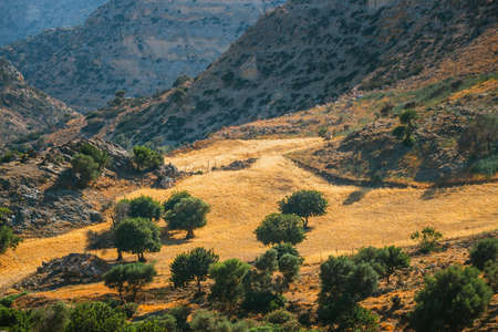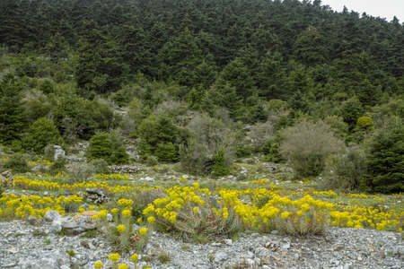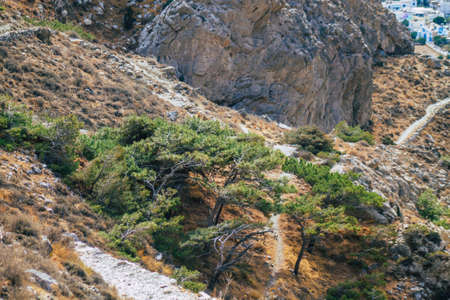 Summer mountain peak green, hilly landscape of traveling to Greece, Beautiful pine trees in the mountains, creet