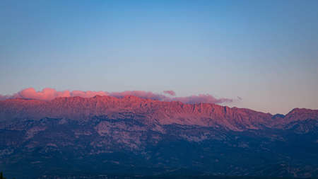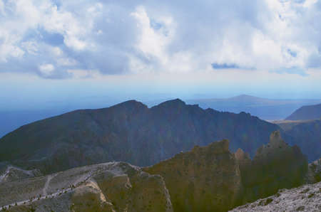Beautiful view of the cloudy sky from the viewpoint of Tahtali Mountain in the region of Antalya, Turkey. Tahtali Dagi, Antalya Province, Turkey