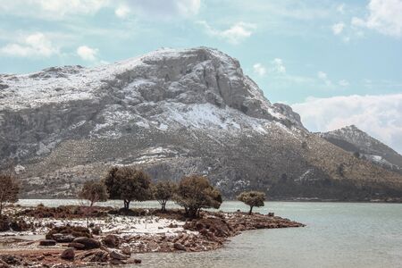 view of Serra de Tramuntana and Embassament de Cuber in Mallorca, Spain