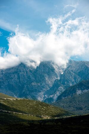 Quacella Mountain in the Madonie Park with clouds and blue sky