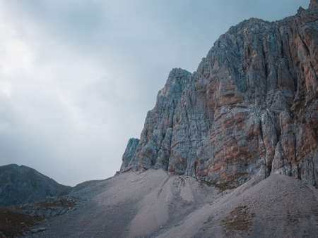 Big huge mountain against summer sky with clouds. Beauty in nature concept. Landscape and scenic concept.