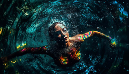 Submerged in liquid tranquility, a woman's portrait beneath the water's surface captures the essence of aquatic serenity, emphasizing her connection with the ocean's profound calmness