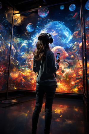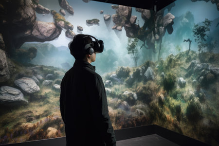 Virtual Art Gallery: An art enthusiast exploring a virtual art gallery, interacting with digital art installation.