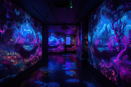 blacklight and uv-reactive installation piece showcasing an interactive artwork that comes to life under blacklight, created with generative ai