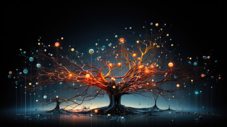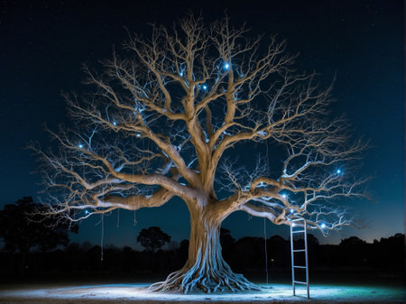 Digital Illustration of a Tree with Light Bulbs in the Background