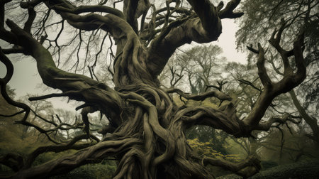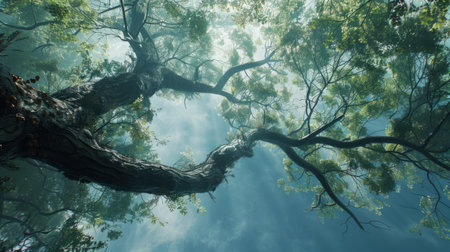 From a low-angle perspective, the immense power and history of an ancient tree are revealed.