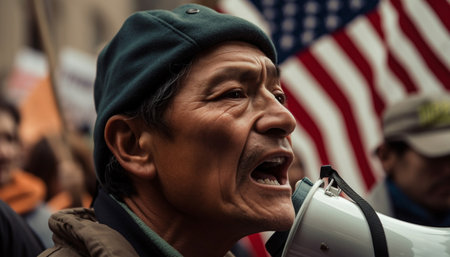 USA flag and people,Independence Day.National Day celebration,silhouette,generative ai