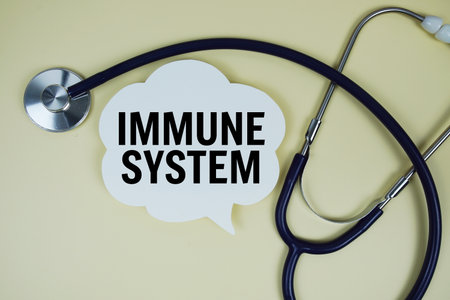 Immune System text on speech bubble with stethoscope on yellow background, Healthy concept