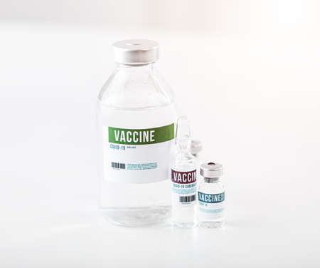 Empty glass jars of coronavirus vaccines. No people