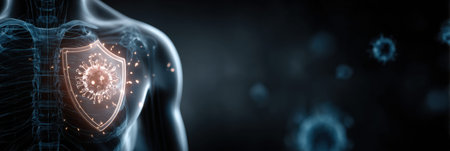 Glowing shield appears inside a human body, showing protection of the immune system against harmful elements in a dark setting.