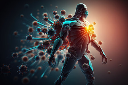 Human immune system, virus attack, protection against bacterias. Created with Generative AI.