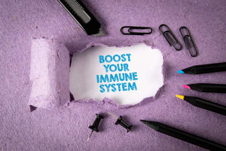 Boost Your Immune System. Torn purple cardboard on a white background