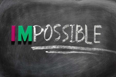 impossible concept written in white chalk on a blackboard