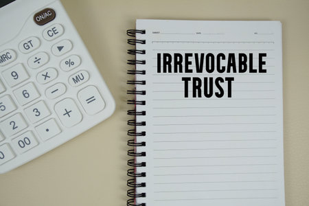 Irrevocable Trust text with calculator phrase of business and financial concept