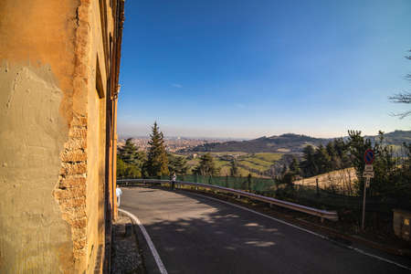 Bologna / Italy - February 12, 2020: View of the amazing city of Bologna in Italy, before the outbreak of the Cornavirus Pandemic.