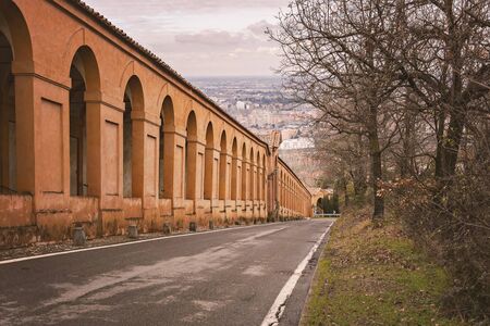 BOLOGNA, ITALY - CIRCA SEPTEMBER 2017: Porches in the old city centre in black and white