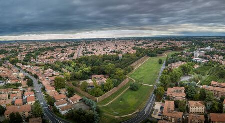 Ferrara city walls and bastions aerial view Emilia Romagna Italy