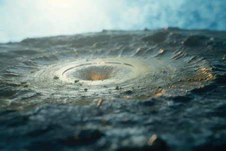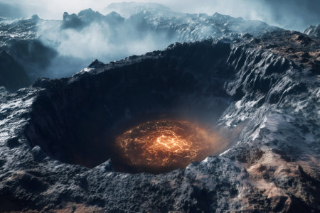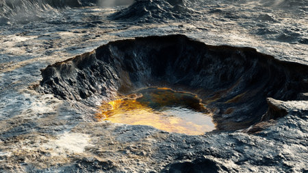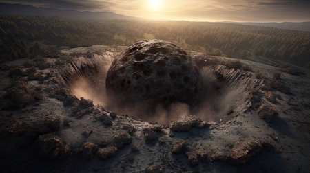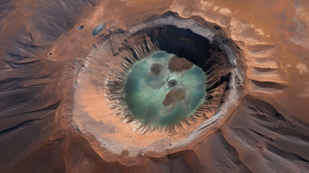 An AI generated illustration of an aerial view of a crater located on a hillside