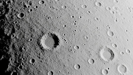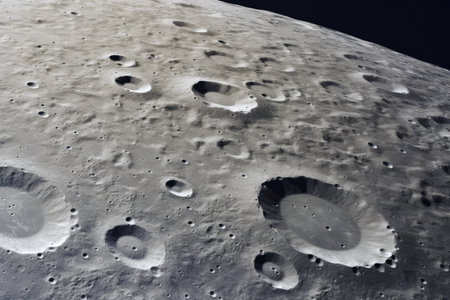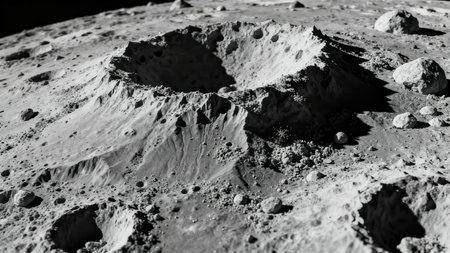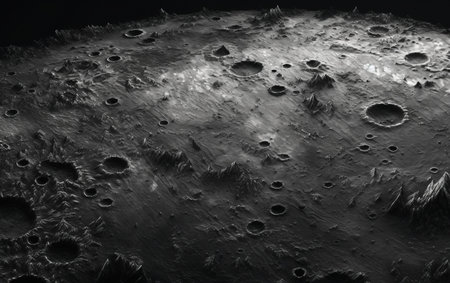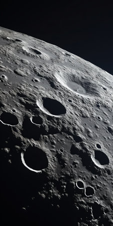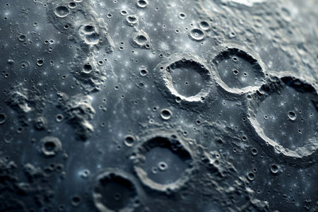 Detailed view of cratered moon surface with rough texture, highlighting celestial formation, geology and space exploration.