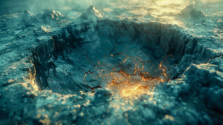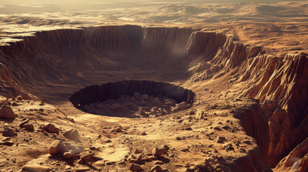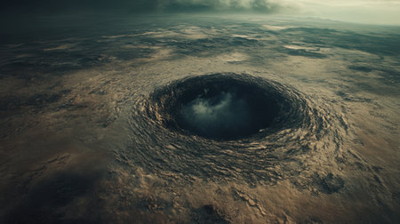 AI Generated. giant impact crater on a vast landscape
