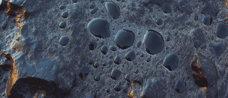 Detailed view of a rock surface resembling a lunar landscape, featuring irregular craters and a rough texture. the dark-toned, naturally eroded surface adds depth and interest, ideal for backgrounds and textures in creative design projects. Generative AI