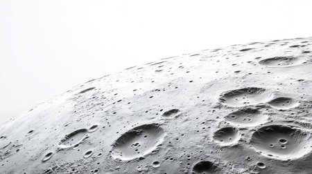 Majestic lunar terrain displays intricate craters and varied textures, as shadows play across the surface in a realm of silence and cosmic beauty. This surreal, desolate environment invites wonder.
