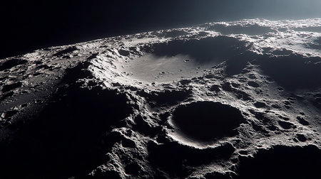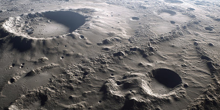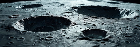 Moon craters in 3D, space view with detailed surface, photorealistic lunar landscape design.