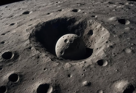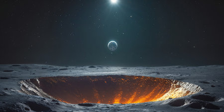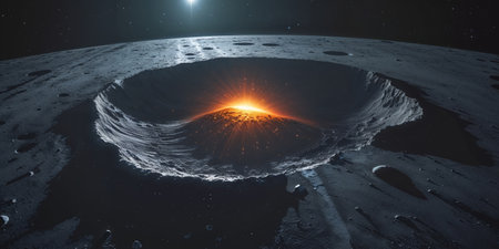 AI Generated. Lunar Surface Crater Impact Glows in Cosmic Space with Celestial Body View
