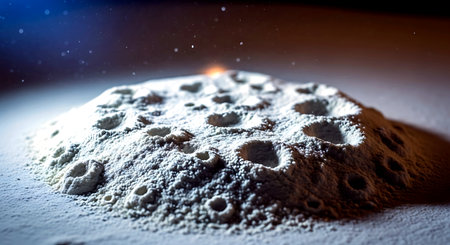 Detailed macro shot of a planetary surface with textures and craters in stunning close-up detail