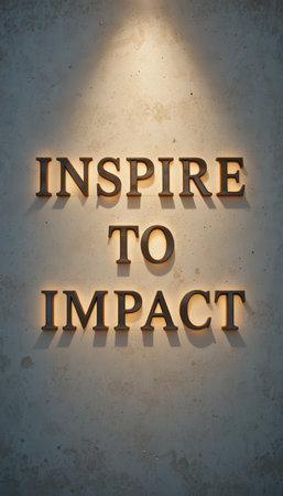 This image features the words Inspire to Impact illuminated on a textured wall, creating a powerful and motivational atmosphere perfect for modern office or creative spaces.