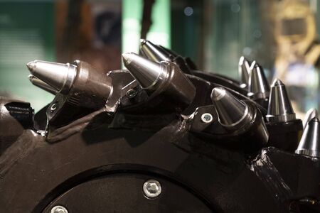 old manual milling machine shell mill in noir lighting style closeup with selective focus