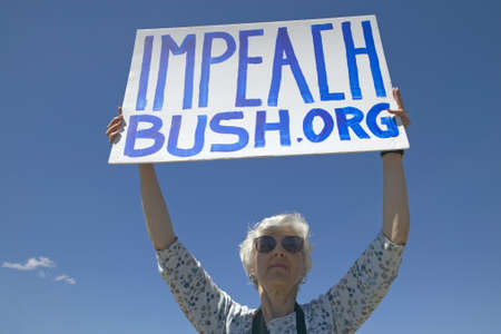 Political rally with a sign reading Impeach Bush in Tucson, AZ