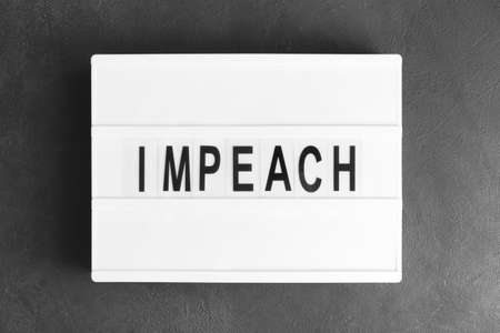 Impeachment banner. Stylized inscription IMPEACH textured by USA grunge flag. To illustrate the political process in the news, press, blogs, social networks, information space