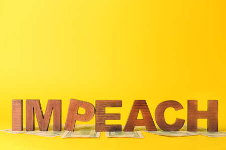 Concept of US politics, Impeachment showing with US flag with Impeach in wooden letters