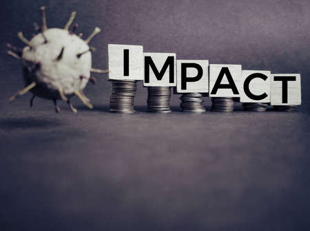 Impact word written on ripped torn yellow paper with blue background. Conceptual impact word symbol. Copy space.