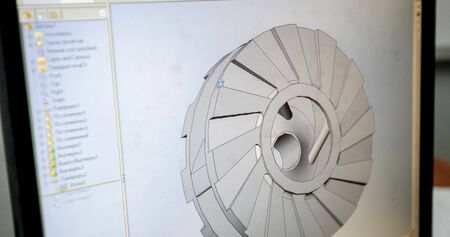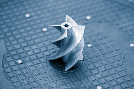 The turbine parts form metal 3D printing process in the light. The high technology metal forming by metal 3D printer.