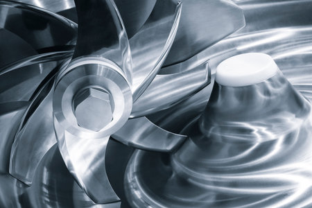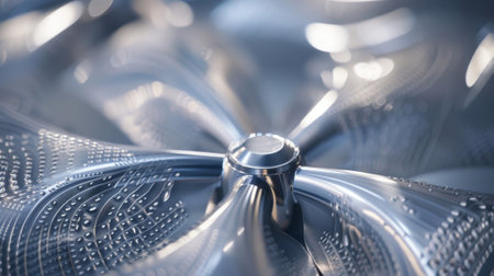 Close-up of swirling metallic blades, intricate texture, dynamic motion.