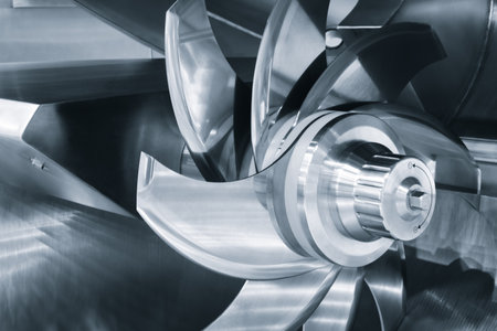 Impeller from a centrifugal compressor, disassembled and rejected due to quality requirements