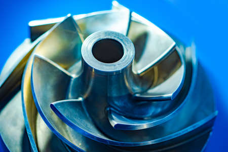Close up cross section detail impeller and inside centrifugal pump for industrial