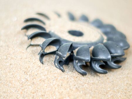 Old water turbine on dried sand with out water, useless in drought condition