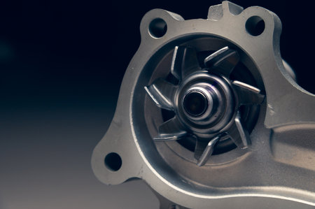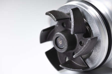 Close-up car engine cooling water pump on gray background