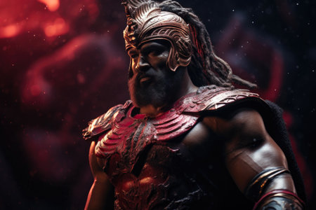 An AI generated illustration of a glorious Roman warrior chief with a serious expression