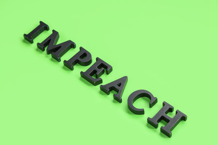 Black letters spelling word IMPEACHMENT on green background