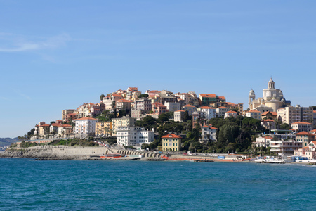 Imperia. Liguria. Panoramic view from the sea of ancient city