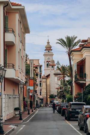 Bordighera, Italy - June 11, 2023: City center with old houses and church