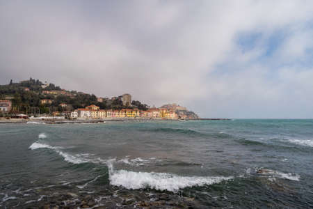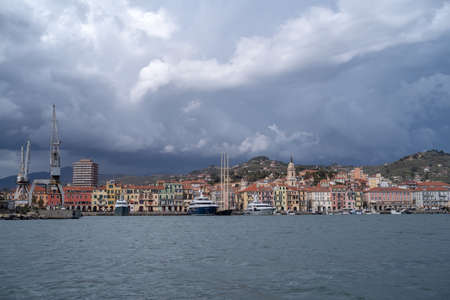 Italian Riviera. Imperia old town, view from the sea on a rainy day
