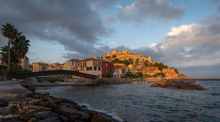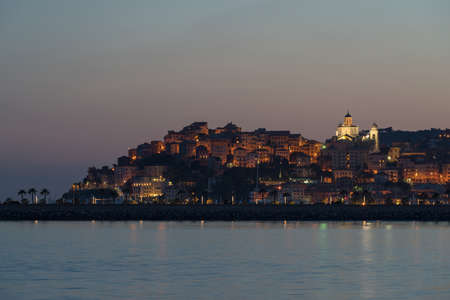 View a traditional mediterranean town at sunrise. Sanremo, Italy