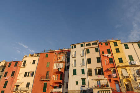 Colorful facades of houses in the historic center of Porto Venere, Liguria region of Italy